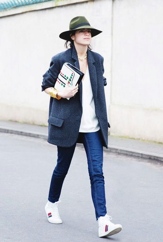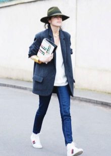 From shoes choose sneakers or ankle boots with thick heels, and the most courageous can complement the image with a hat.