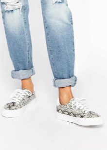 Sneakers and sneakers are perfectly combined with jeans. They are suitable for images in sports and casual style, when you want to feel as easy and comfortable as possible.
