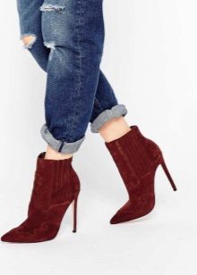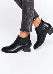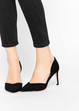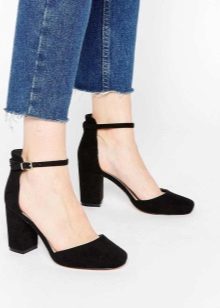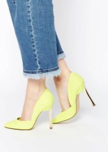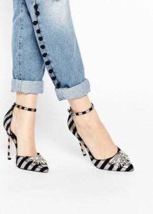 Heeled shoes are versatile shoes that fit almost any style of jeans, especially if they are pumps. Remember that the leg length should be up to the middle of the heel, of course, if you do not wear cropped jeans. The belly should not completely close the heel, it looks absolutely ugly.