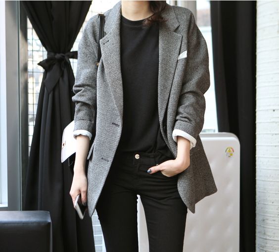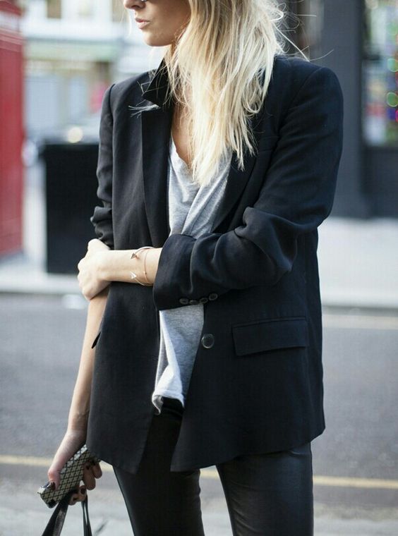 Equally well with business, everyday or grunge style. It can be worn with both rough shoes and sneakers or pumps. Supplemented with bulky bags or small clutches, a black jacket is suitable even for an evening out, complemented by a top in a linen style and a massive necklace.