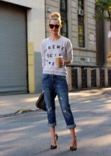 - Jeans of such length look great with a different top, which makes it possible for every girl to show their individuality, to create a unique stylish bow.
