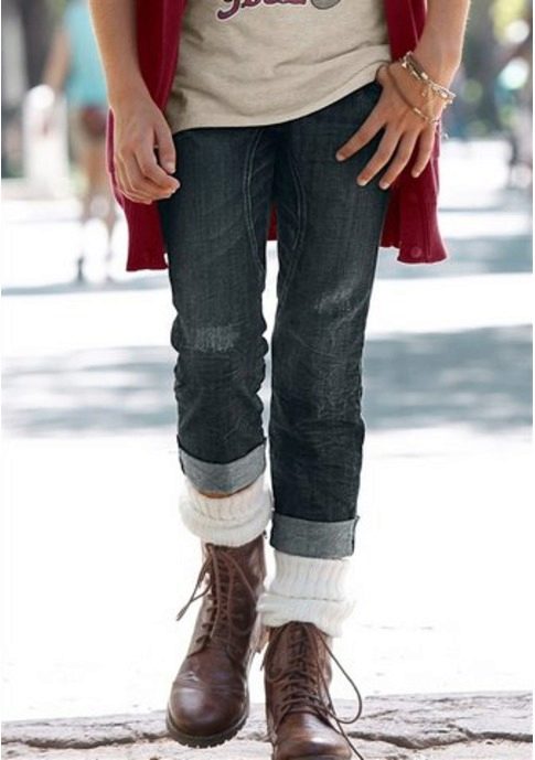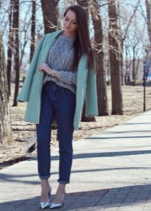 In cool weather, cropped jeans can be easily worn with ankle boots or boots. An excellent solution would be knee-high boots, decorated with ethnic patterns and heels.