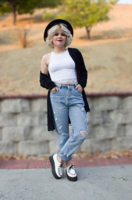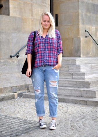 Shortened boyfriends may have folded or cropped legs, and the seams may be sloppy. For brutal models it is worth picking up vests, but more fitting options can be combined with blouses made of flowing fabrics.
