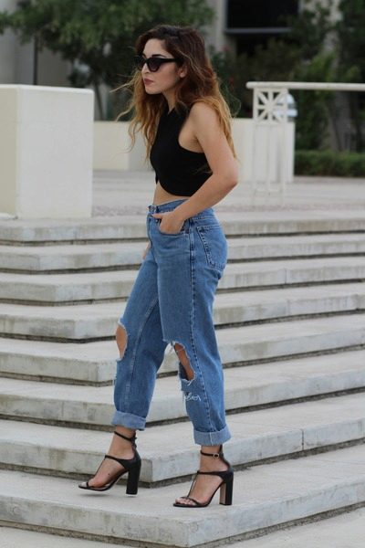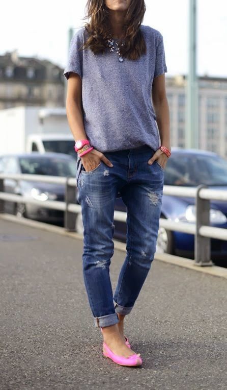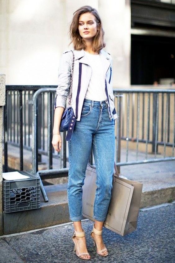 When choosing shoes, you can not limit yourself, as cropped jeans look amazing with different models. A comfortable choice would be ballet flats, platform sandals or gladiator sandals.
