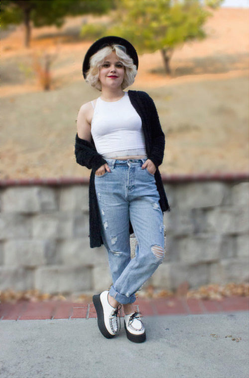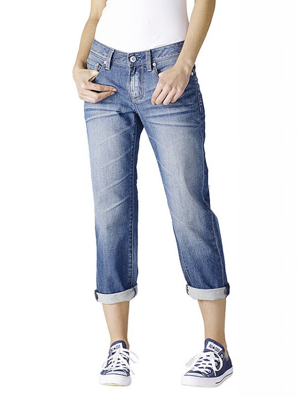 Cropped jeans are not a separate category, as almost any style can be worn in a standard or shortened form. They can be straight, flared or skinny cut, as well as with or without pockets. Waistline can be either too high or too low. Cropped jeans can be of different lengths: to the ankle, slightly below the knee or to the knee.
