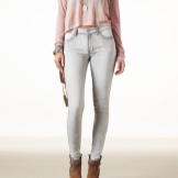 By the way, jeggings can be worn during pregnancy. Thanks to the elastic denim knitwear, they are well worn and do not constrain movements. Elastic band does not press on the stomach, but gently supports it. Jeggings are perfectly combined with other clothes for pregnant women and help the expectant mother to feel very comfortable and confident.