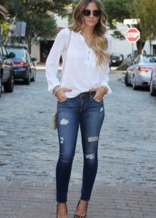 Create a strict, official style will help a classic blouse or a strict shirt complete with a jacket. A chiffon blouse with ruffles, frills or ruffles can make an image more light and romantic.
