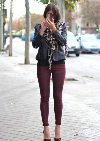 If dzhegginsa decorated with geometric, floral, Scandinavian or other print, then the rest of the clothing should be plain. It is desirable to match the color jeggins.
