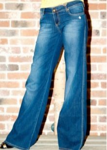 - Mid-rise blue flared jeans. This is a lightweight model designed for the spring-summer season, so it is sewn from thinner and softer denim.