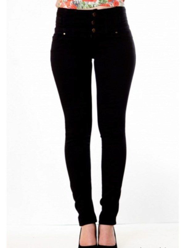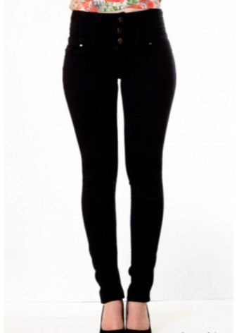 - Black skinny jeans look very impressive due to the high fit. The dense waist part of the button fasteners acts as a bandage, pulling up the tummy and forming a waistline.