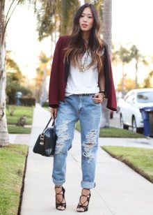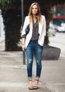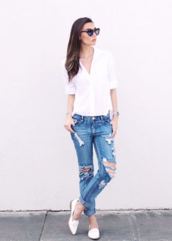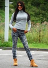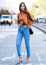 Here it is important to correctly combine colors: with blue and white models, the T-shirts and tops of the pastel range look better. With dark jeans, you can combine deeper and more aggressive colors. This also applies to turtlenecks or any other tight blouse.