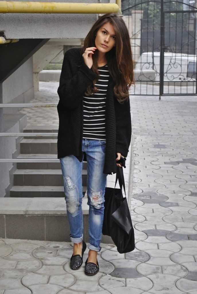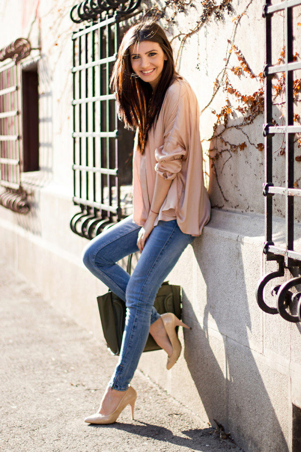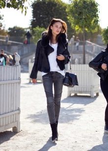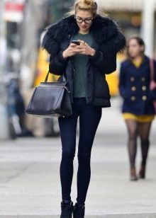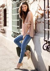 Harmonious ensemble with skinny jeans is easy to create. This is one of the few things that goes with almost anything.