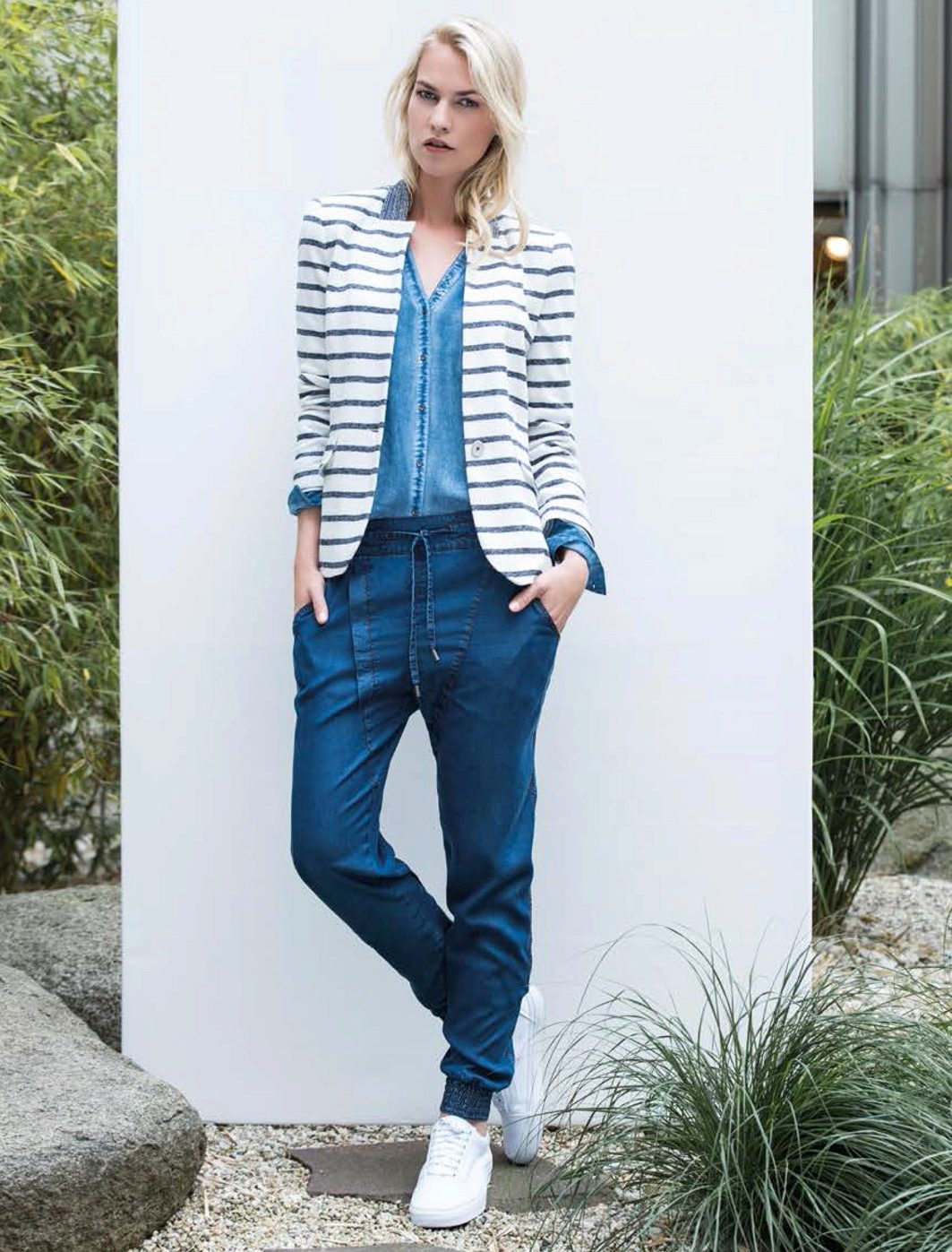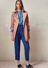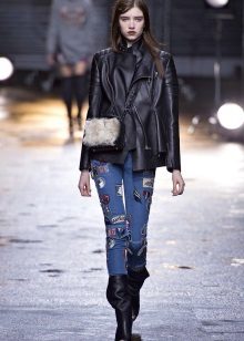 This season, the trend of fashion will be straight jeans, narrowed to the bottom with an elastic band. Such a design move allows you to simplify the design.
