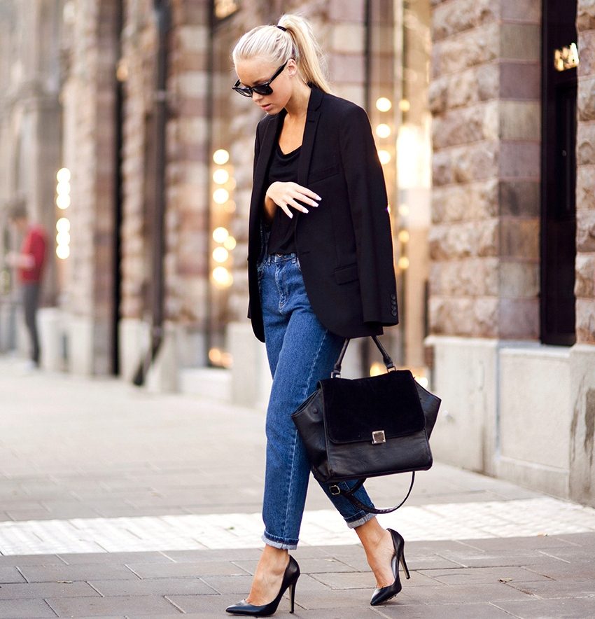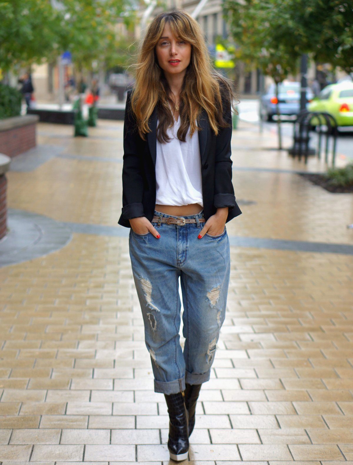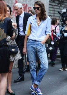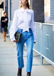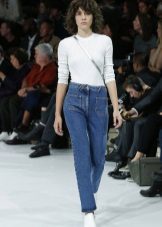 The popularity of this model is due to the fact that such jeans do not hinder movement and do not cause discomfort, even if they are made of thick denim. It is best to wear them with a top tucked into pants.