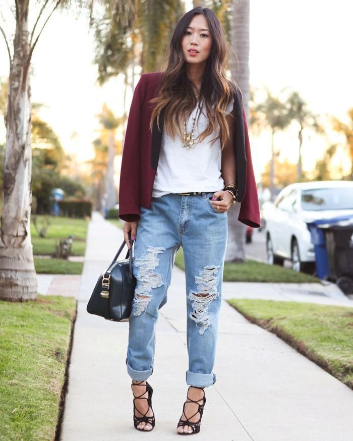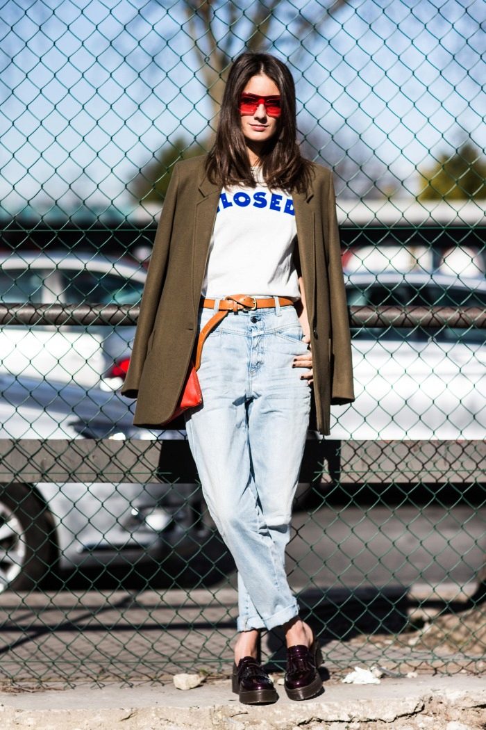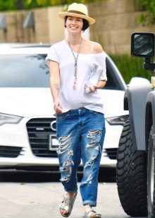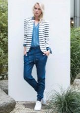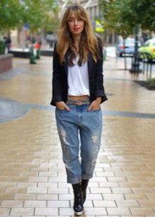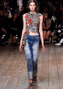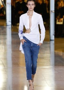 Of course, there can be no talk about skinny or slimy. There should be free-fitting jeans, slightly narrowed to the bottom.