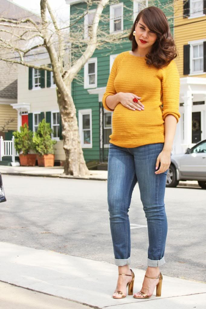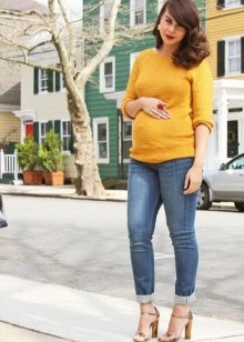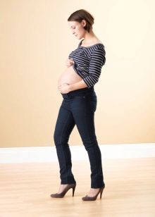 And one more important thing: walking jeans should be high waisted. But if the future mom is engaged in sedentary work, in this case it is better to choose pants with an average fit.