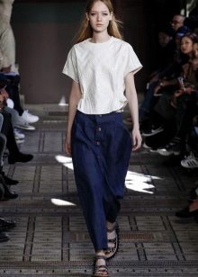Modern designers develop and produce a lot of models specifically for expectant mothers. All fashionable proportions are observed in them, while such models do not squeeze too much either the tummy or the legs.