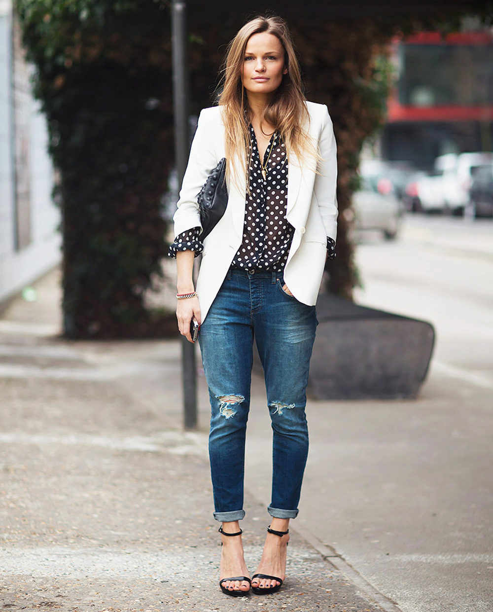 Going to office or business meeting? Then the top fit shirt or blouse. In cool weather, this ensemble will perfectly complement the jacket or windbreaker of a classic cut.