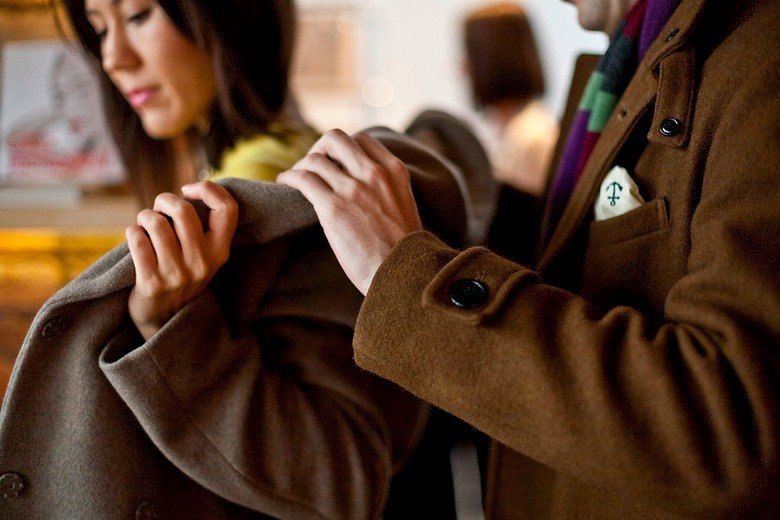 - A man should go to the wardrobe after the performance himself and take a coat for his lady, while helping her to put it on.