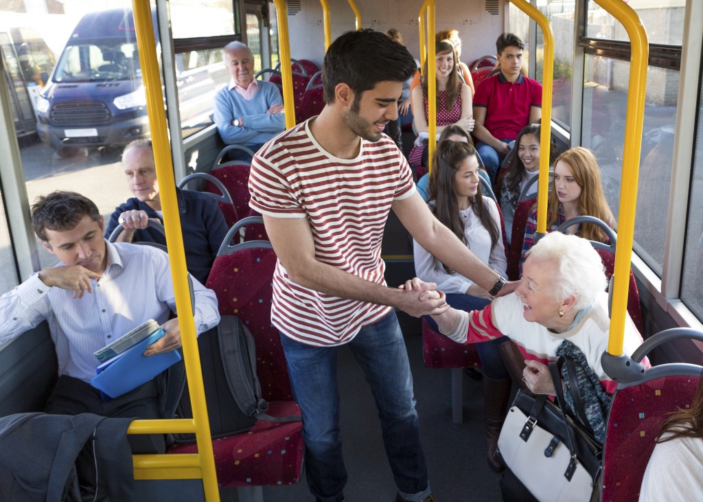 - Give place to older people, pregnant women and women with children and people with limited mobility.