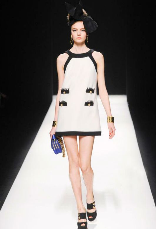 With dresses of this style, pendants on long chains, long earrings, small bracelets are well combined.