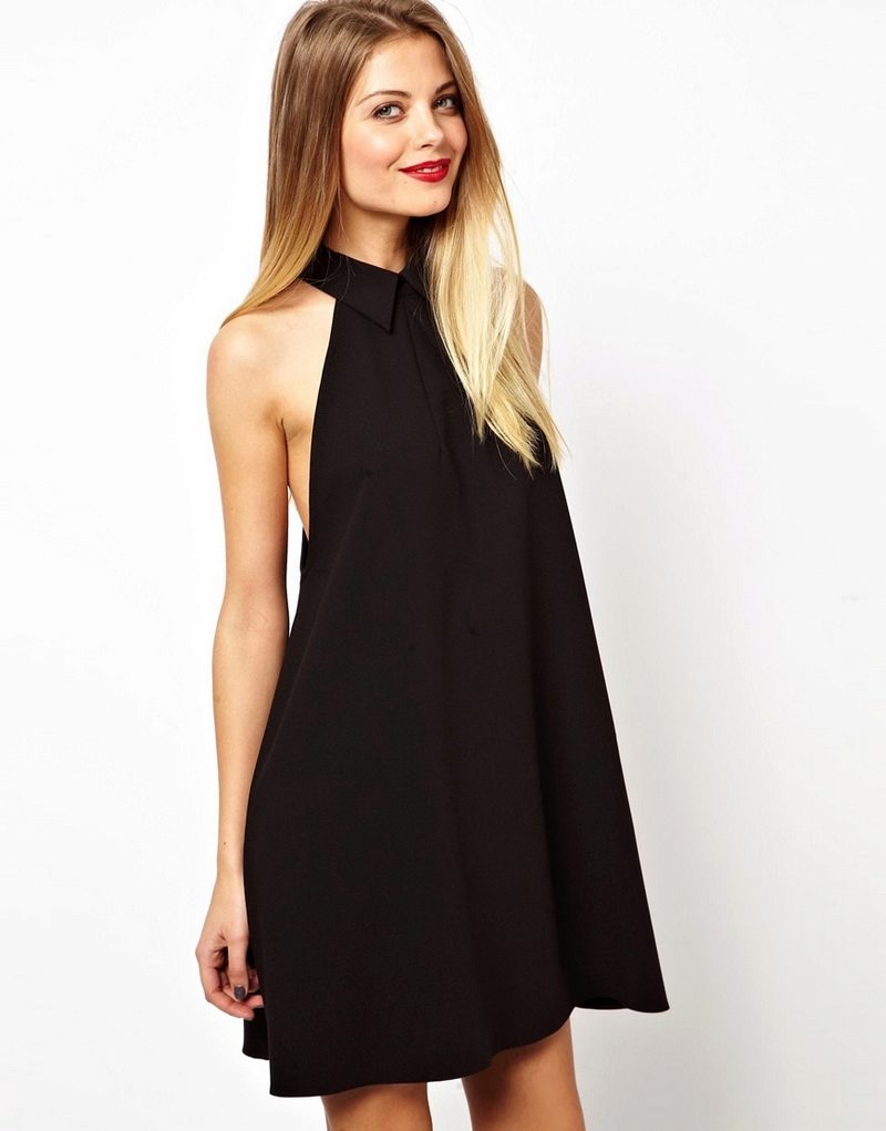 - If your neck is short, the best choice would be a dress with an armhole made with a V-like neckline. Picking up a model with a stand-up collar, you visually make the neck even shorter. If you have a long neck, an American dress with a stand will suit you perfectly.