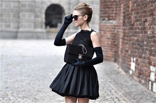 For a cocktail and evening dress, decorated with an American armhole, it is recommended to pick up long gloves. This outfit also looks good with a palatine or with a fur cape. Also add such a dress with a clutch bag and shoes with heels or wedges.