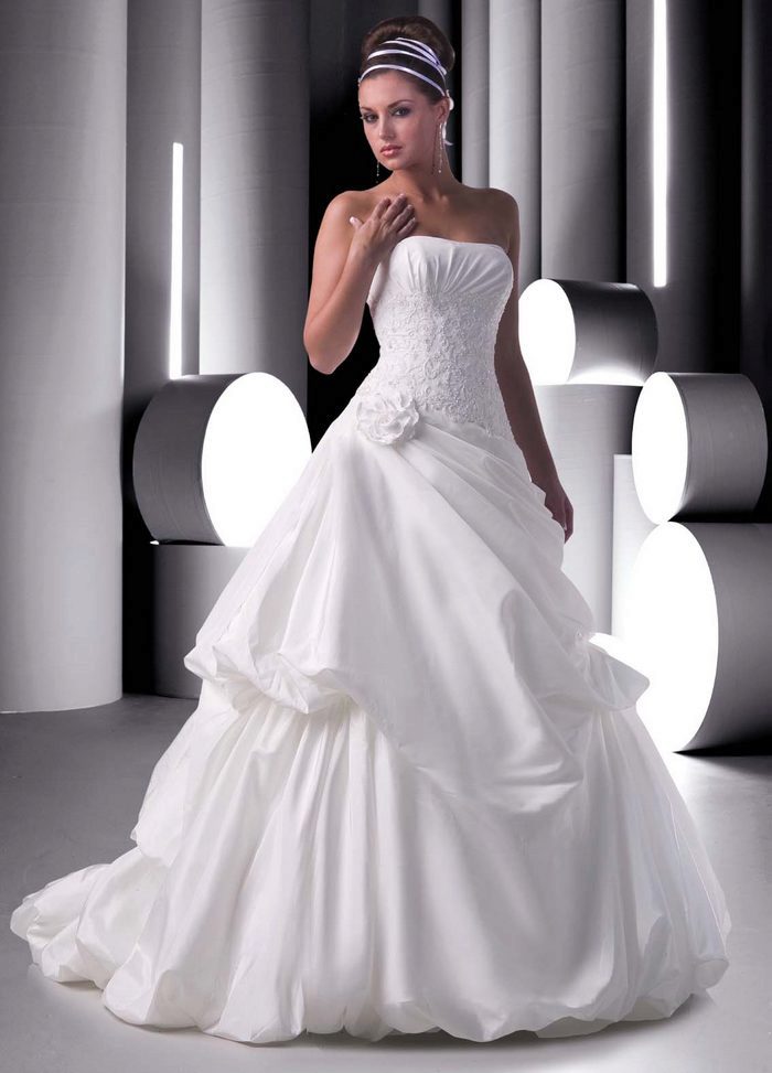 Ball gowns can be festive or even wedding attire. In this case, preference is given to light, airy tissue, such as taffeta or organza. The volumetric skirt of translucent material looks like a real light cloud.