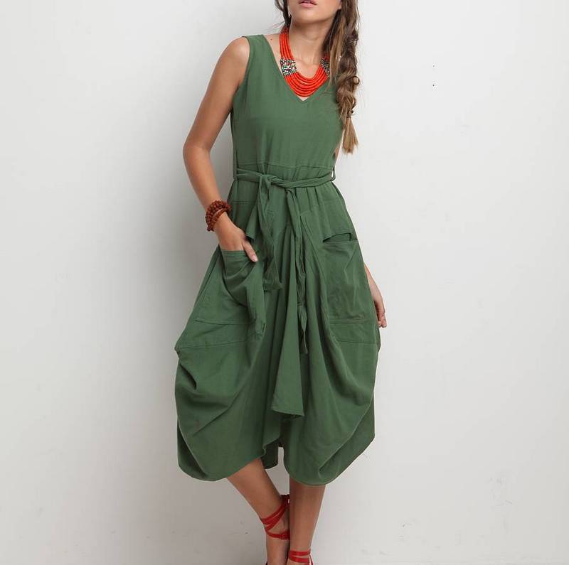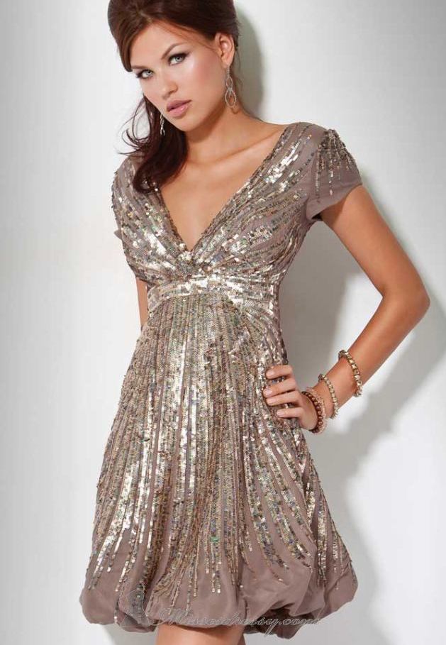 - Dresses with a V-neck have an incredibly useful property: they emphasize the chest and visually stretch the neck. Triangular neckline is one of the main trends of the new fashion season. A balloon dress with an attractive neckline will make you catch the admiring glances of others.