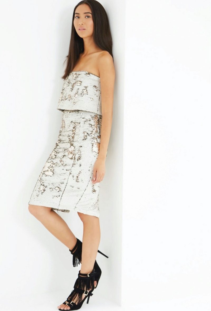 A bandeau dress is a party outfit, so traditionally it is rather short. However, modern designers continue to modify this style, creating more and more new gang models with skirts of different lengths.