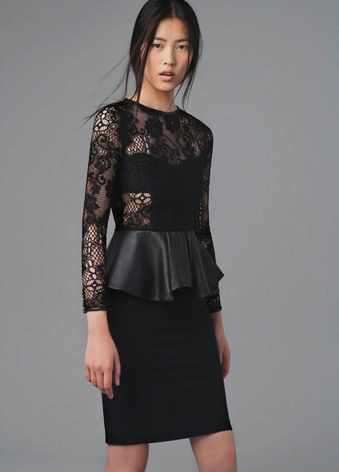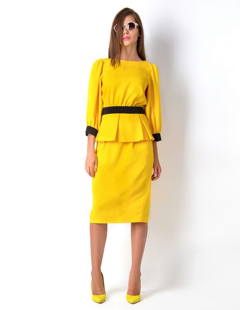 The dress with the basque can be made of natural or synthetic fabric, thin or dense, elastic or not. You only need to choose, based on your own ideas about beauty, features of the figure, time of year and format of the event. You can combine several types of fabric in one model. For example, a dress and a peplum can be sewn from knitwear, and sleeves can be made from guipure.
