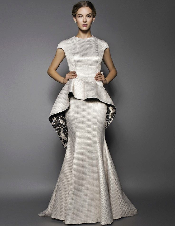 A white dress is not necessarily a bridal outfit. In addition to the wedding there are many other situations where a white dress with a basque would be absolutely appropriate, for example, a graduation party, a theater premiere, etc.
