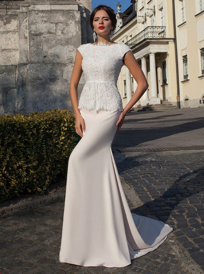 Many brides refuse traditions and prefer short dresses. In this case, a basque dress is a great way to create a modern and elegant wedding look.