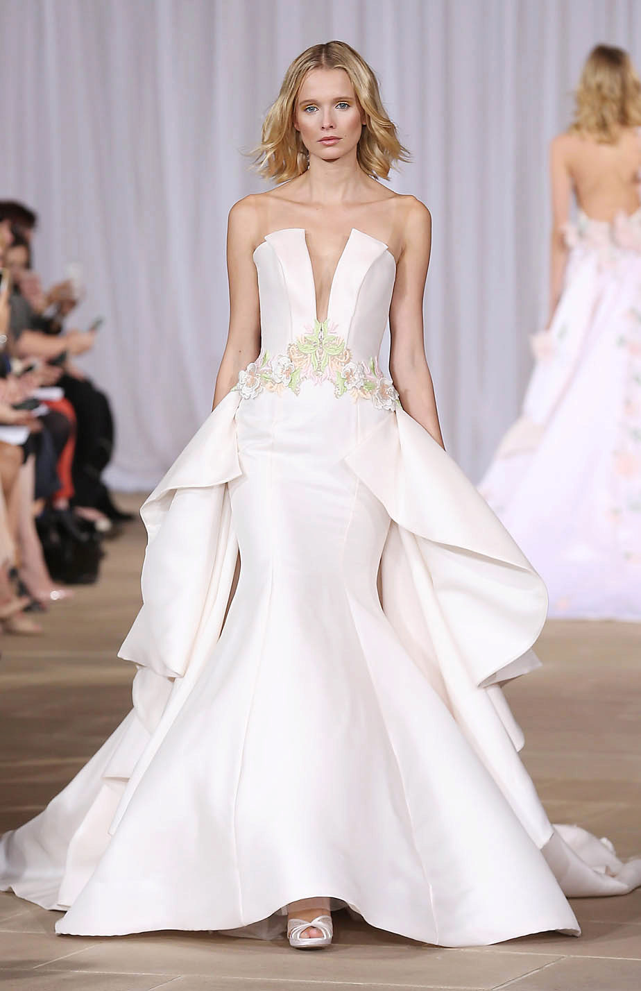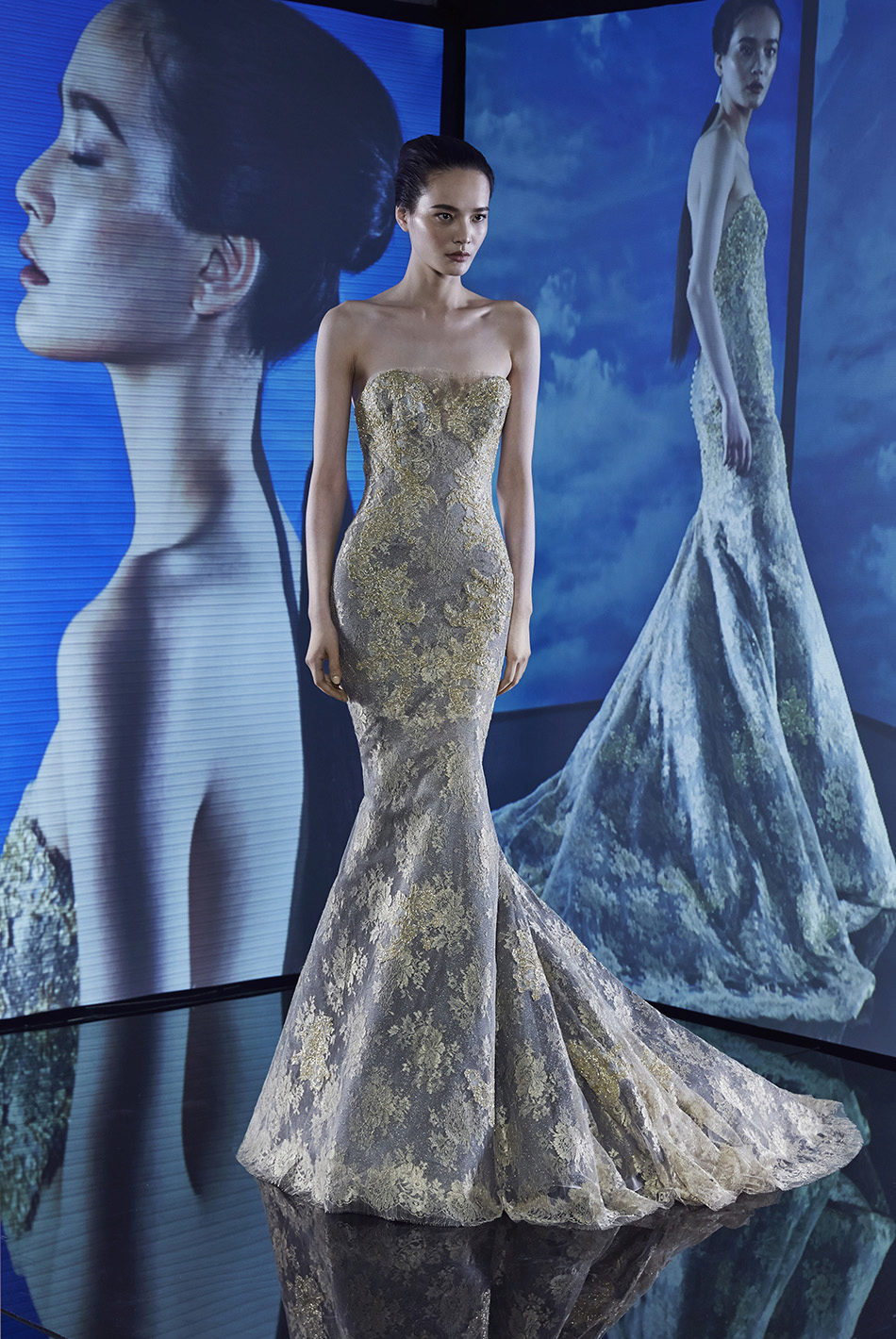 In a strapless mermaid dress, the waist and hip lines will be perfectly emphasized.