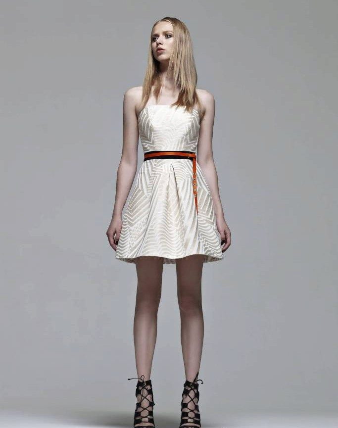 Summer collections of fashionable houses are also filled with strapless dresses. The most popular ones are short ones under a belt of free or tight-fitting cut.Belts can be of various width leather or gum belt.