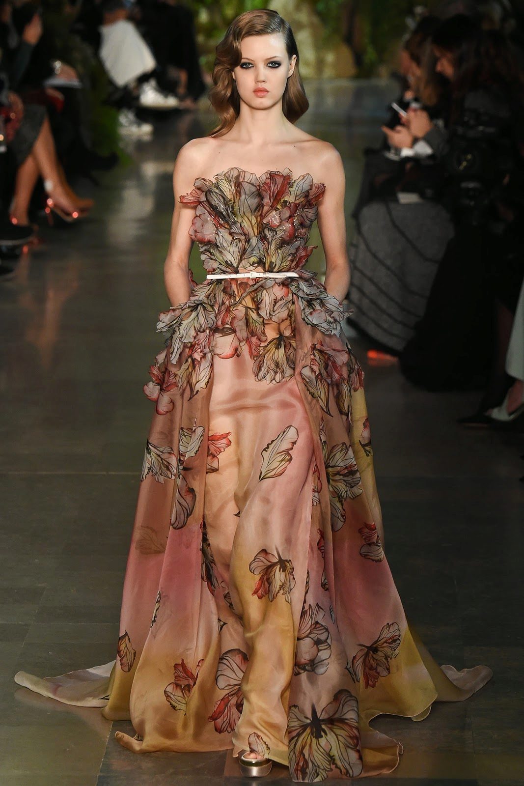 A very feminine and romantic image will create a dress with a floral print.
