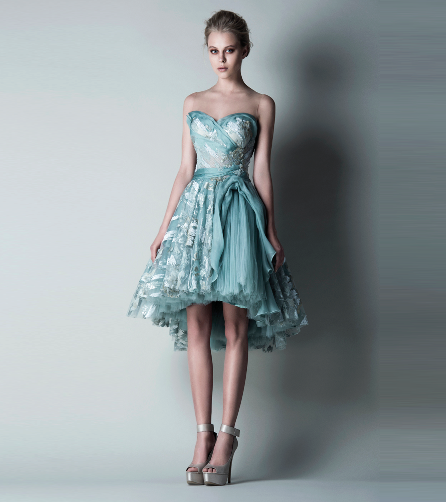 At the party, you will become a star in a short strapless dress. It emphasizes the figure favorably and attracts attention due to the decor.