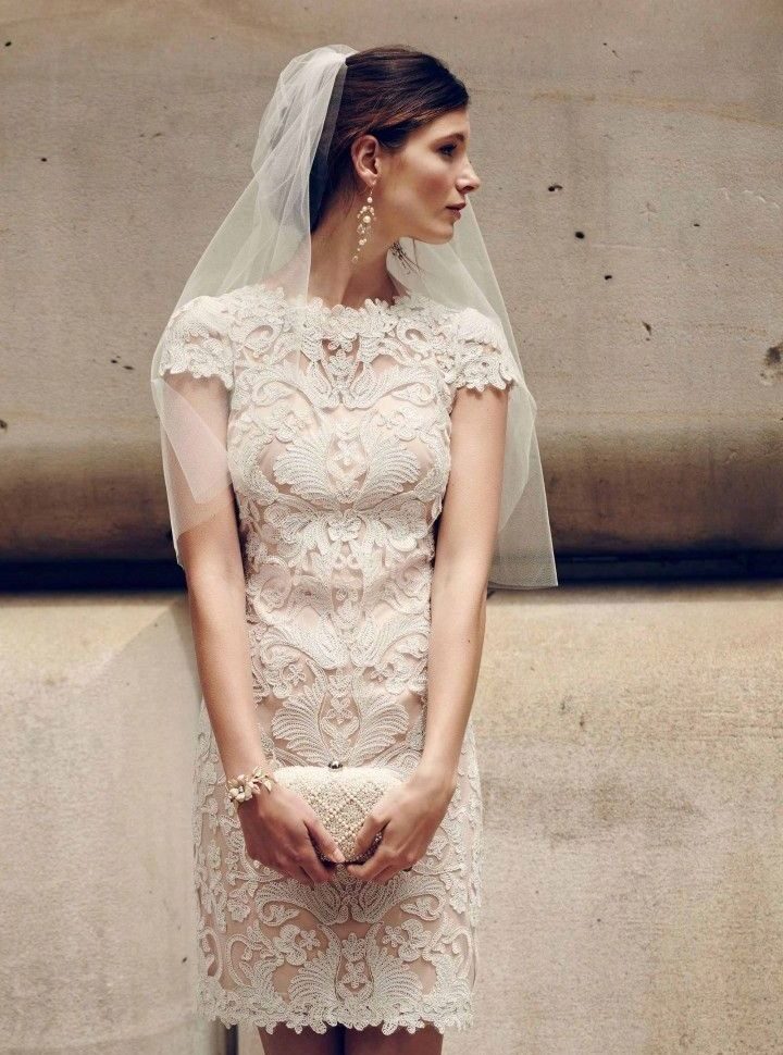 A white sheath dress is a very romantic and cute outfit. We have already said that such a dress is often chosen by brides who refuse traditional fluffy dresses.
