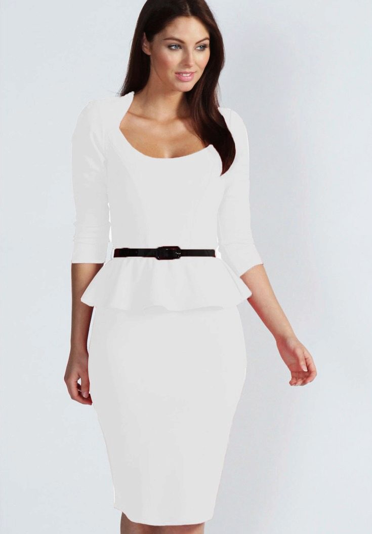 The classic sheath dress is just below the knee. The cut on the chest is round and shallow. This model has no sleeves and a variety of decorative elements - a belt, pockets, etc. Only thin straps are allowed.Traditionally, the sheath dress is made in black or in neutral colors - gray, beige or blue.