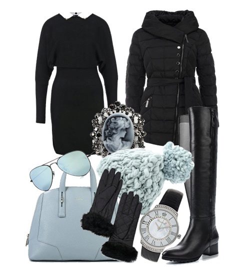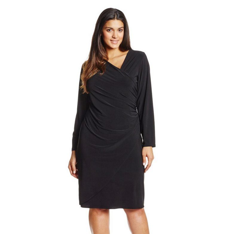 - Dress with a slinky silhouette. The best option would be a black dress. In such a dress, the hips will visually narrow, the chest and shoulders will be more pronounced, and the figure as a whole will look more sexy. This dress can be worn with a fitted jacket, shoes with high heels and a thin scarf.
