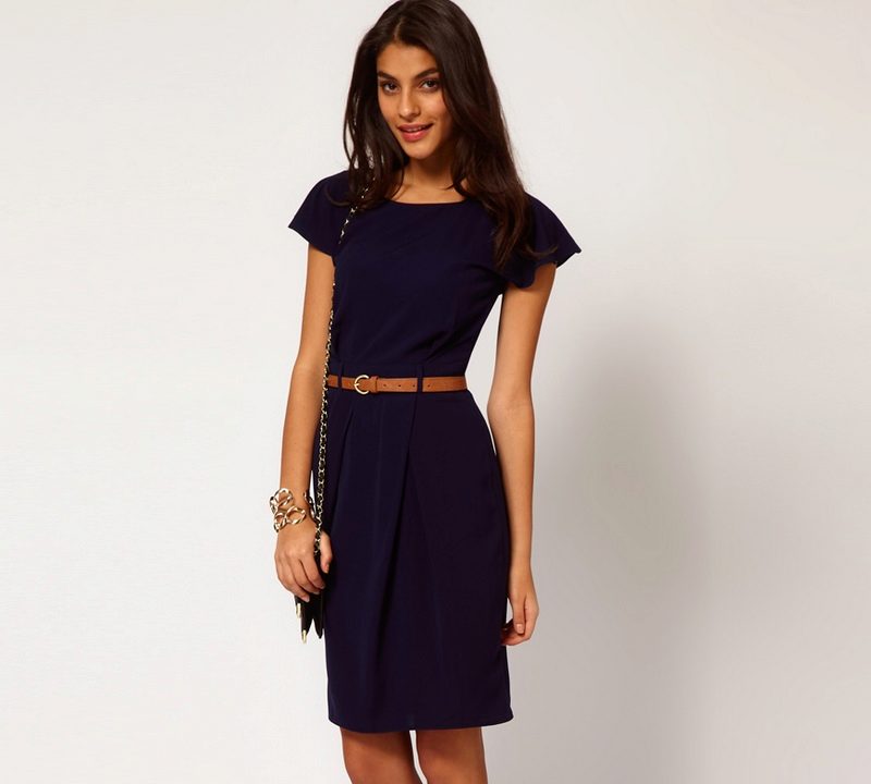 - Dress with a bell skirt. The best option would be a knee-length model, as well as a dress with a high waistline.
