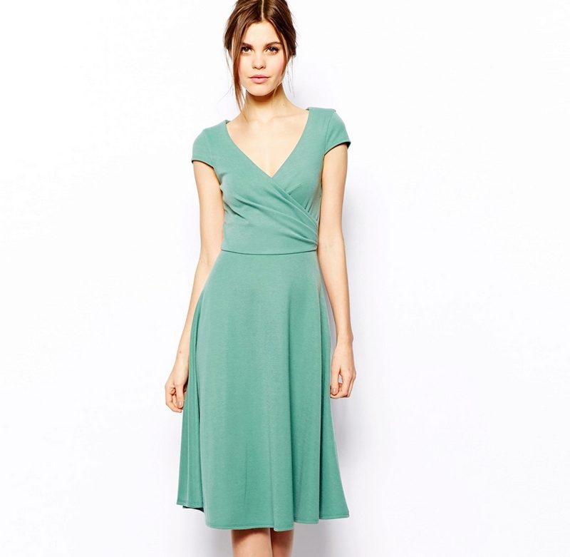 - Dresses with flared skirt. They must certainly have a tight-fitting top and a distinguished waist, and fabrics for such outfits will select flowing fabrics. The length of the skirt is found both in the floor and midi.
