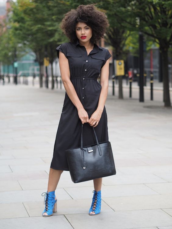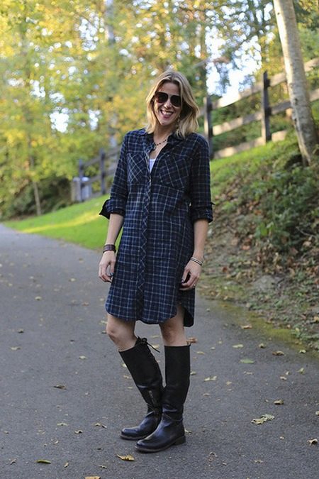 Also, this style is well combined with sandals and ballet shoes. For a long model of such a dress, choose shoes with thick heels or platform. Wearing boots with a platform or a steady heel with a shirt dress will create a retro look.