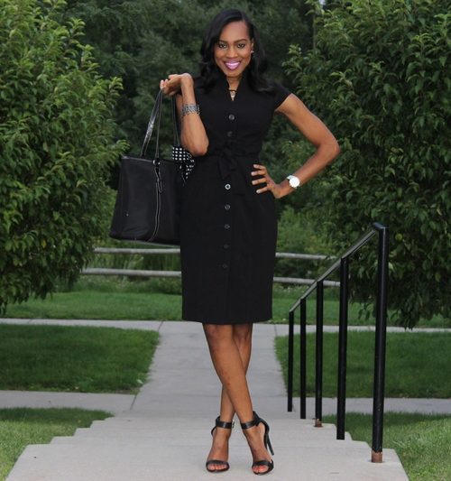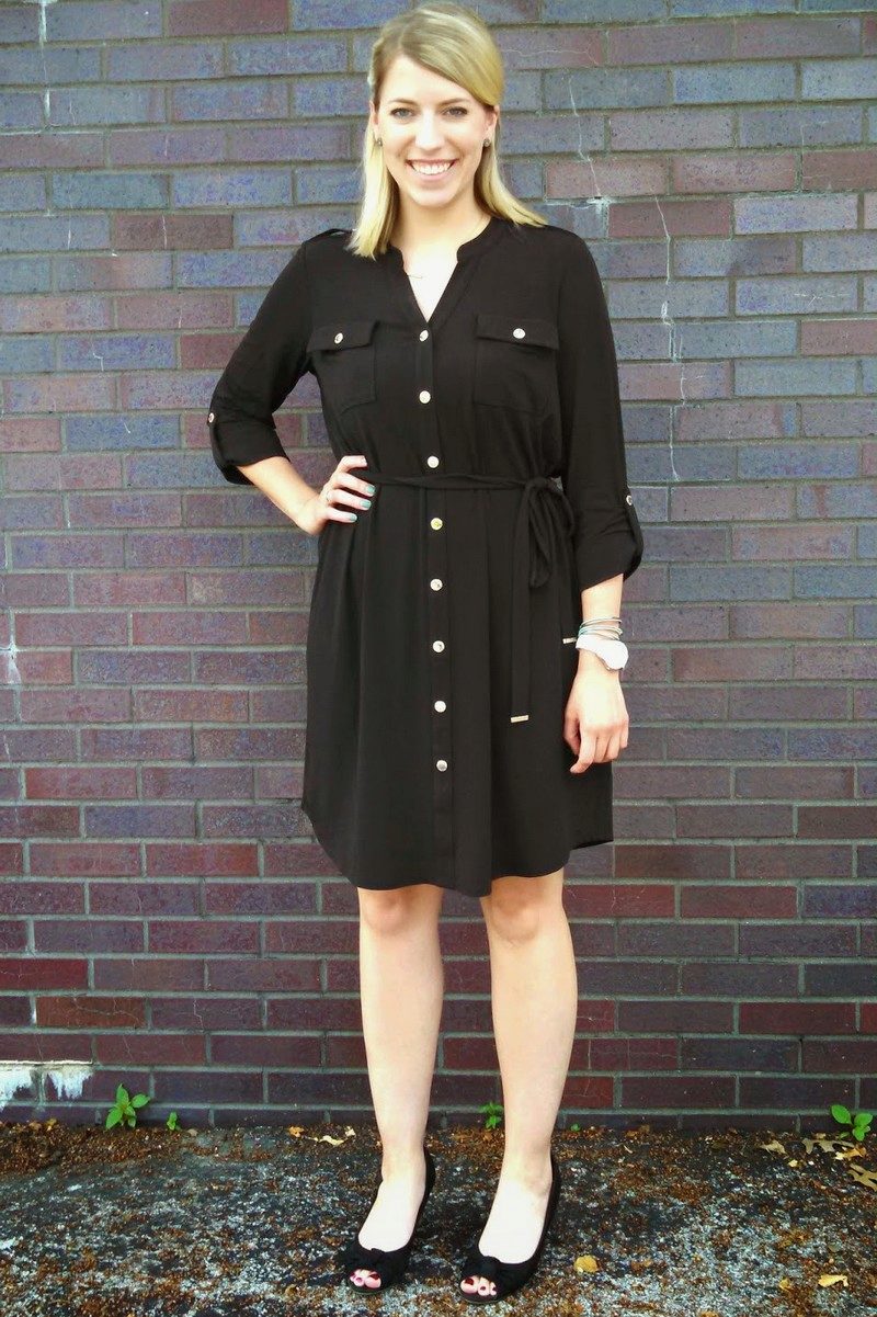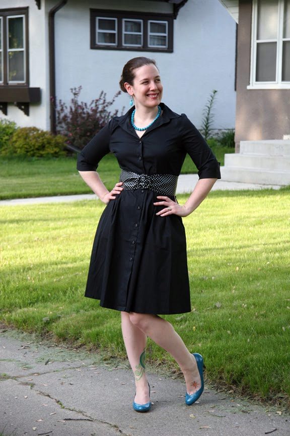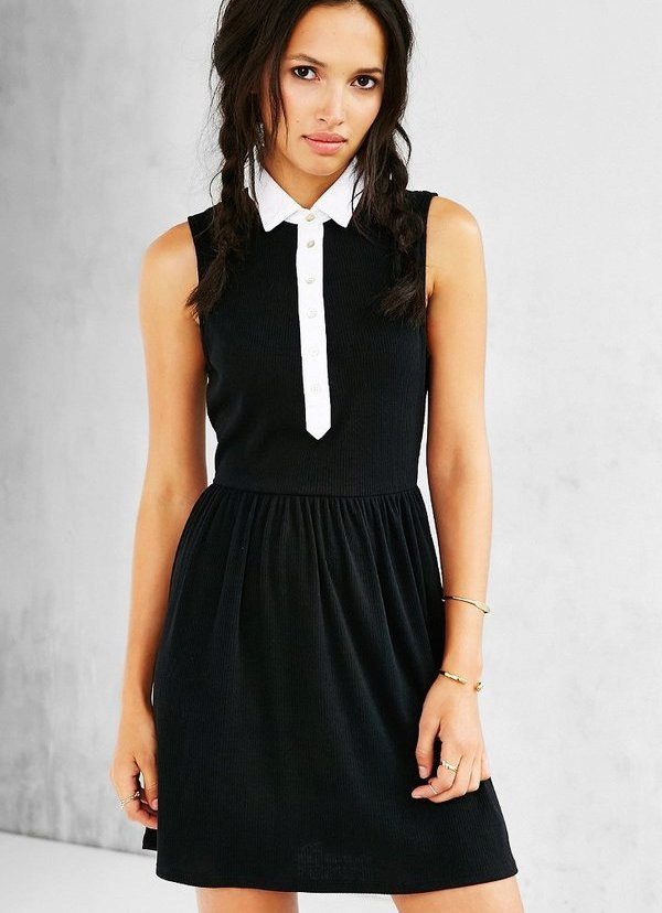 Black shirt dresses with white trim help to highlight the advantages of the figure and hide possible flaws. This may be a black dress, in which cuffs and a slat are highlighted in white.