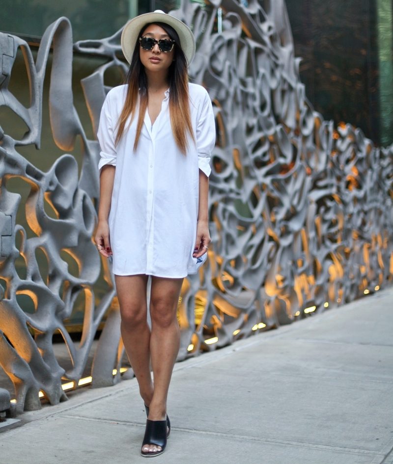 For vintage look, on the contrary, they use large jewelry - beads, earrings, and a bracelet. Brown-shade accessories made of wood or leather are perfect for a white shirt dress.