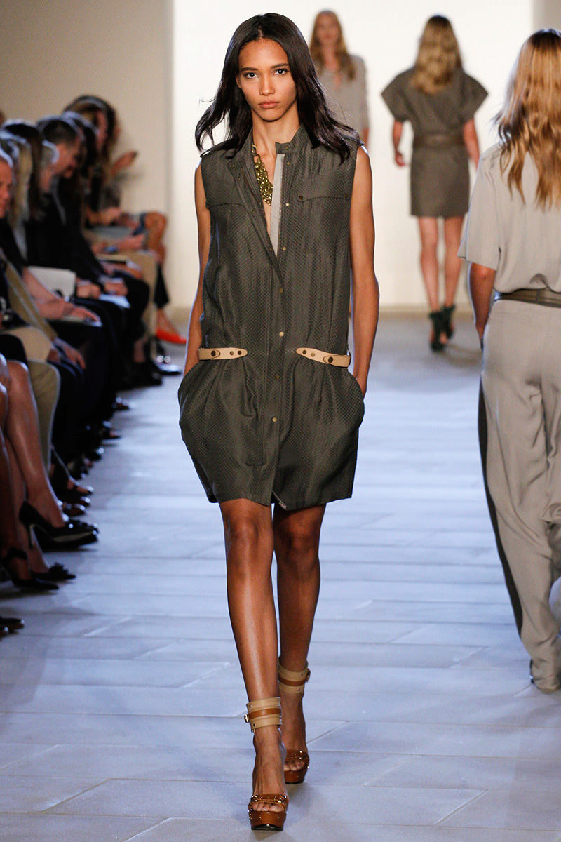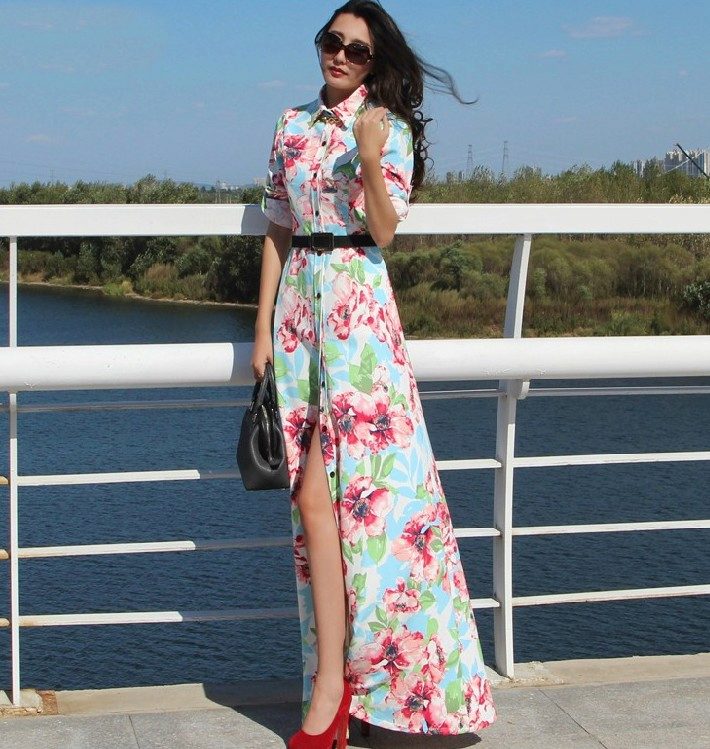 Also, most models of safari dresses have a flap collar, a belt and a short sleeve. Usually for sewing such dresses used thick fabric. A safari dress at the front is fastened with buttons or zippers.