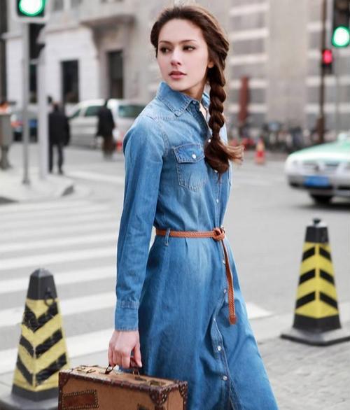 The shirt dress, made of jeans, is very popular these days thanks to its successful silhouette and practical use. Models of thin jeans have a free cut and medium length. In such dresses, the material drapes perfectly and emphasizes the figure.