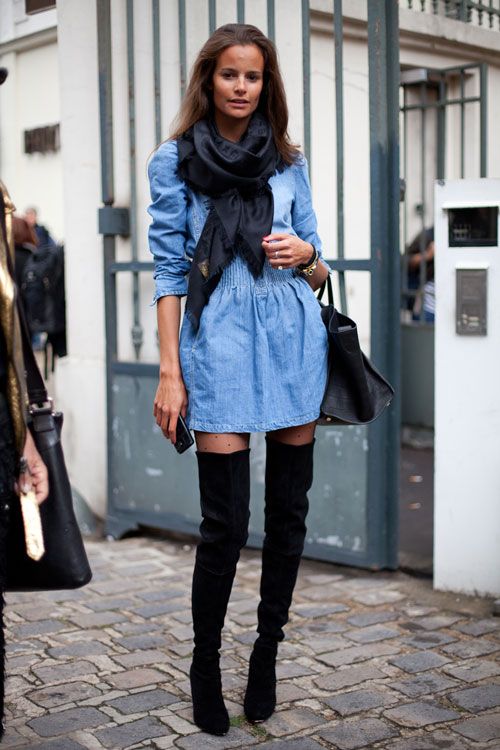 From a denim shirt dress you get an excellent base for everyday wardrobe. By choosing different accessories for it, you can create the desired style (for example, urban or ethnic) in order to get practical and original bows for every day.