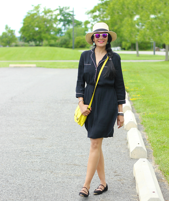 You can also create an image suitable for a date or party based on a casual shirt-dress model, choosing bright shoes, a handbag and a belt.