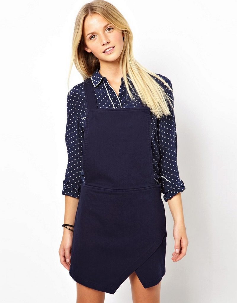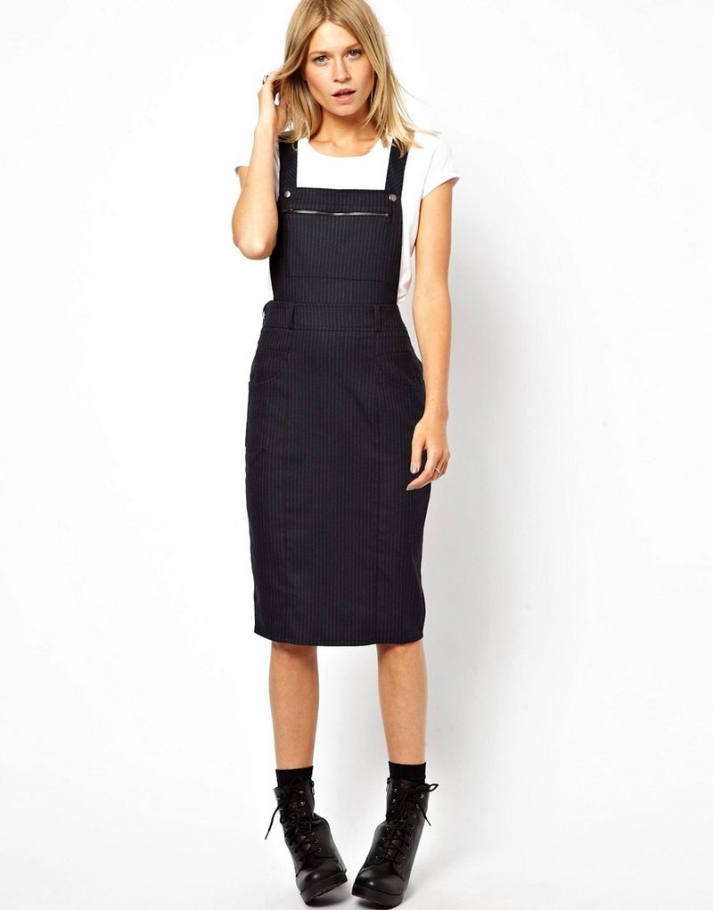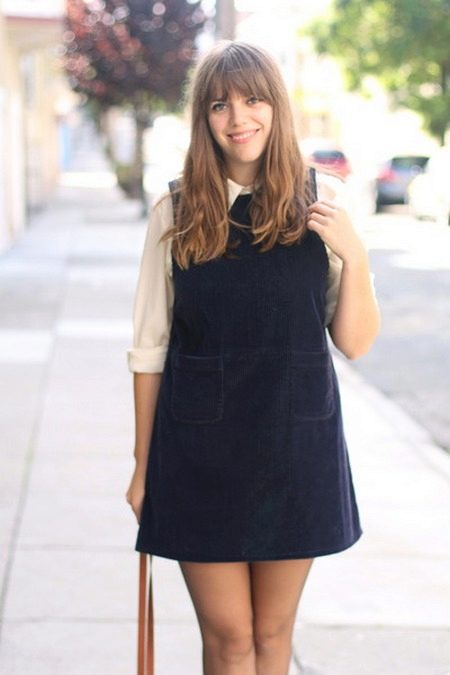 Dress, depending on its model, goes well with different things. Summer sundresses can be worn with a denim jacket or shirt, as well as with an openwork bolero or thin jacket. Office sundresses are worn with a shirt, blouse or turtleneck. Jeans sundresses on the straps in the style of the 90s can be worn over a T-shirt.